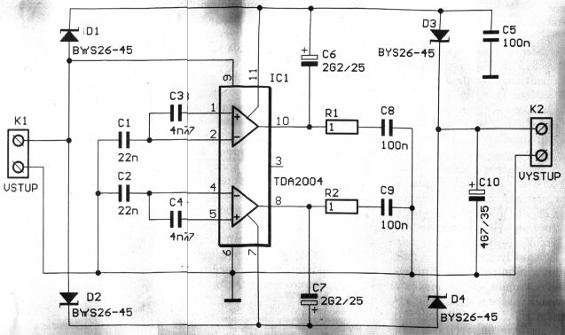 1. Základem je výkonový zesilovač, který je v zapojení